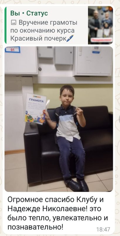 Отличный клуб! Ребенок в восторге, бежит на занятия с радостью. Прекрасные, чуткие педагоги, которые умеют заинтересовать. В "кУМквате" царит удивительно теплая атмосфера. Спасибо, что прививаете любовь к учебе! Рекомендуем всем родителям.
